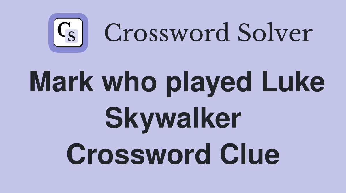 Mark who played Luke Skywalker Crossword Clue Answers Crossword Solver