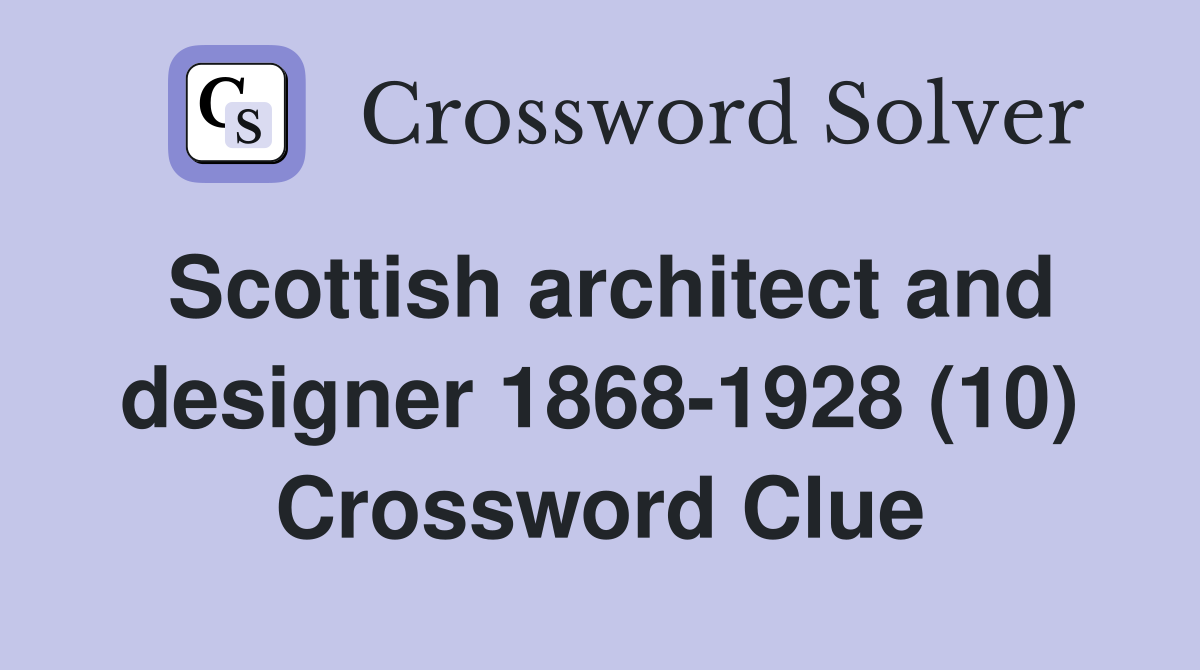 Scottish architect and designer 1868 1928 (10) Crossword Clue Answers