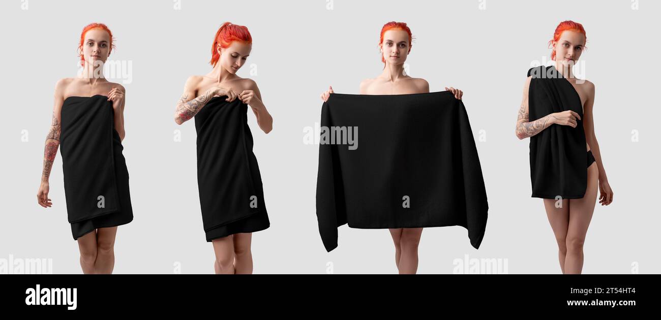 Mockup of a black towel presentation of a dry cloth for wiping on a