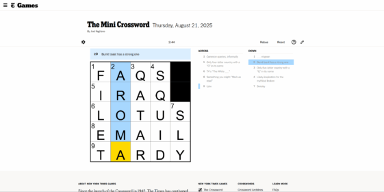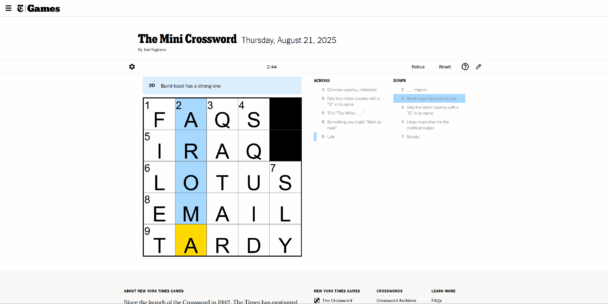 NYT Mini Crossword Solution For Today (August 21 2025)