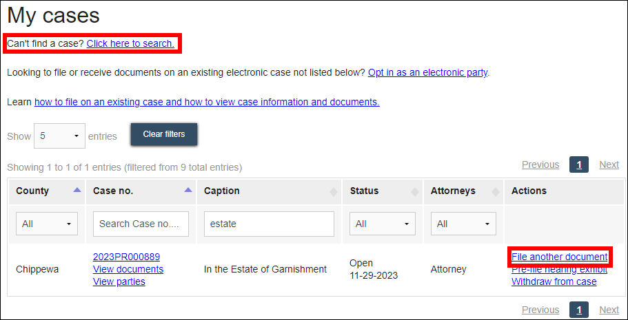 Circuit court eFiling Opting in on an existing case as a filing agent