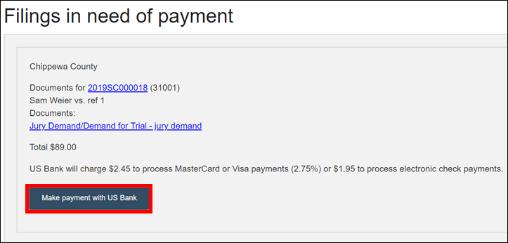 Circuit court eFiling Filings in need of payment Wisconsin Court