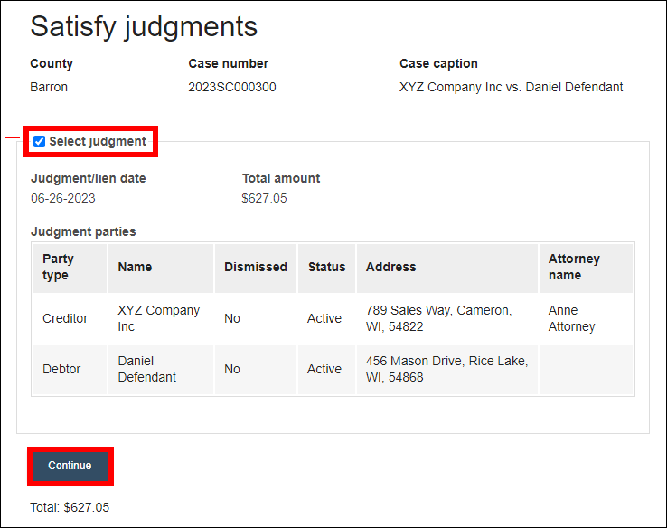 Circuit Court eFiling Satisfying a judgment Wisconsin Court System