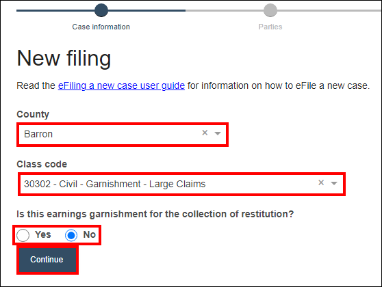 Circuit court eFiling eFiling a new case Wisconsin Court System