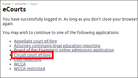 Circuit court eFiling Logging into Wisconsin circuit court eFiling