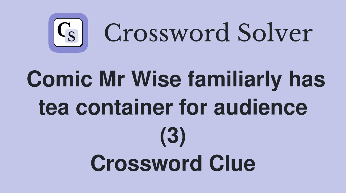 Comic Mr Wise familiarly has tea container for audience (3) Crossword