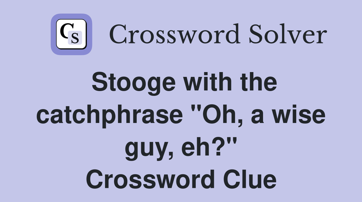 Stooge with the catchphrase quot Oh a wise guy eh? quot Crossword Clue