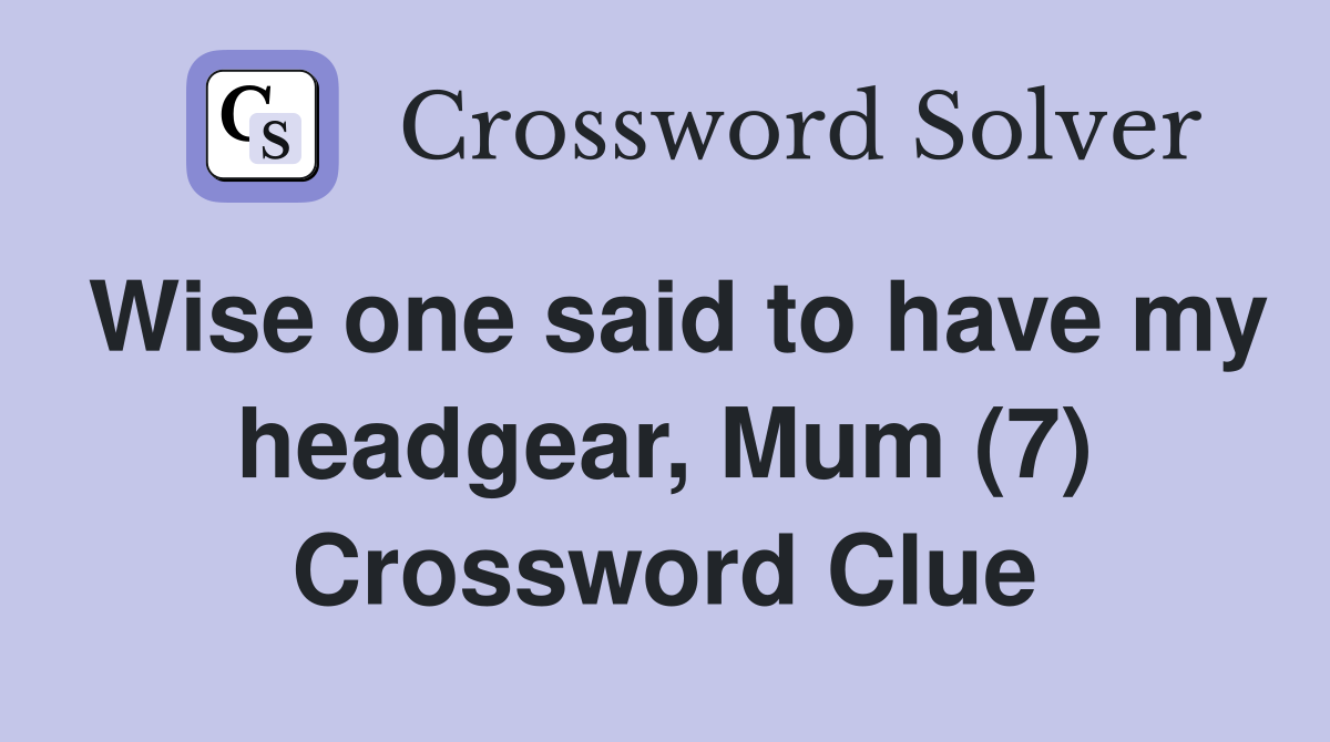 Wise one said to have my headgear Mum (7) Crossword Clue Answers