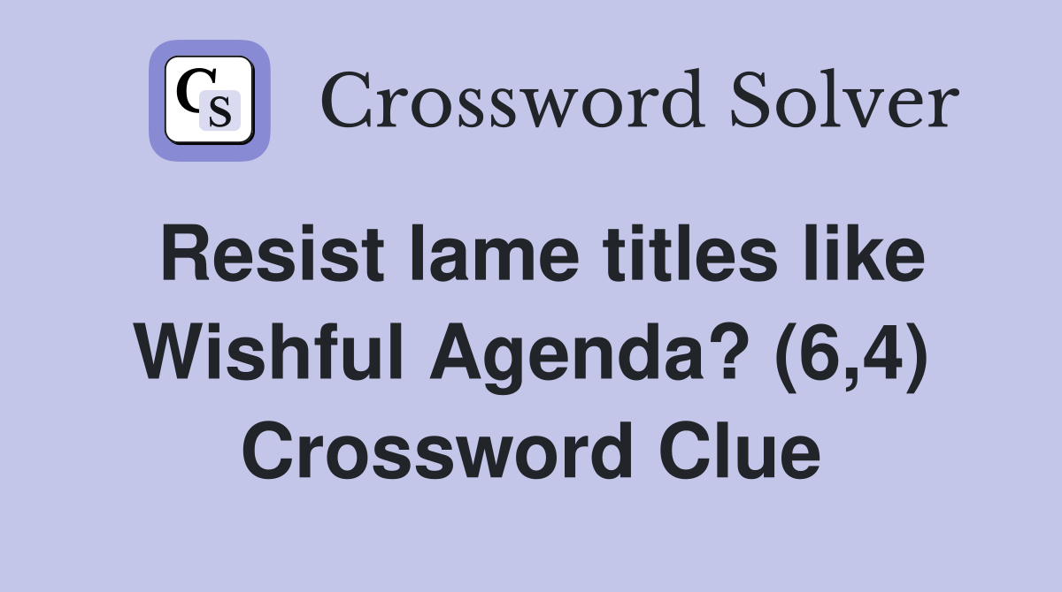 Resist lame titles like Wishful Agenda? (6 4) Crossword Clue Answers