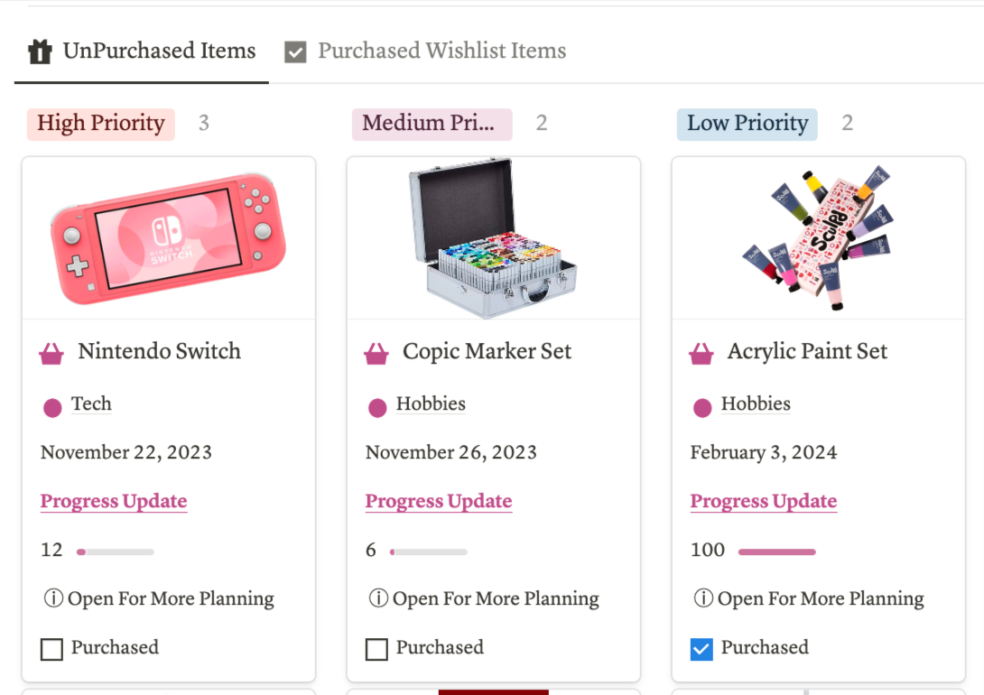 5 Notion Wishlist Templates to Track Your Wants Needs Gridfiti