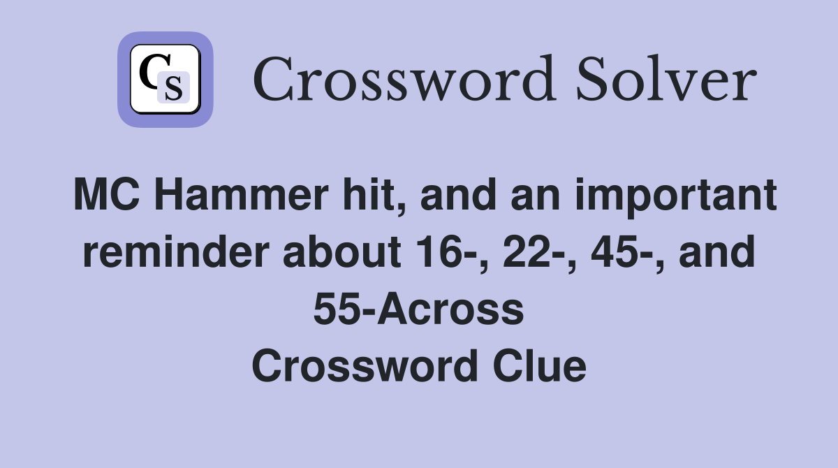 MC Hammer hit and an important reminder about 16 22 45 and 55