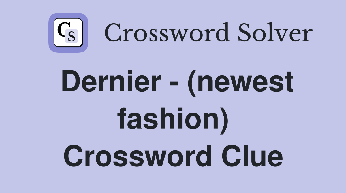 Dernier (newest fashion) Crossword Clue Answers Crossword Solver