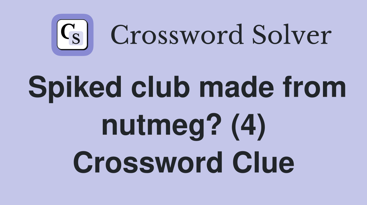 Spiked club made from nutmeg? (4) Crossword Clue Answers Crossword