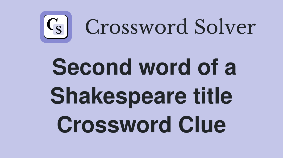 Second word of a Shakespeare title Crossword Clue Answers Crossword