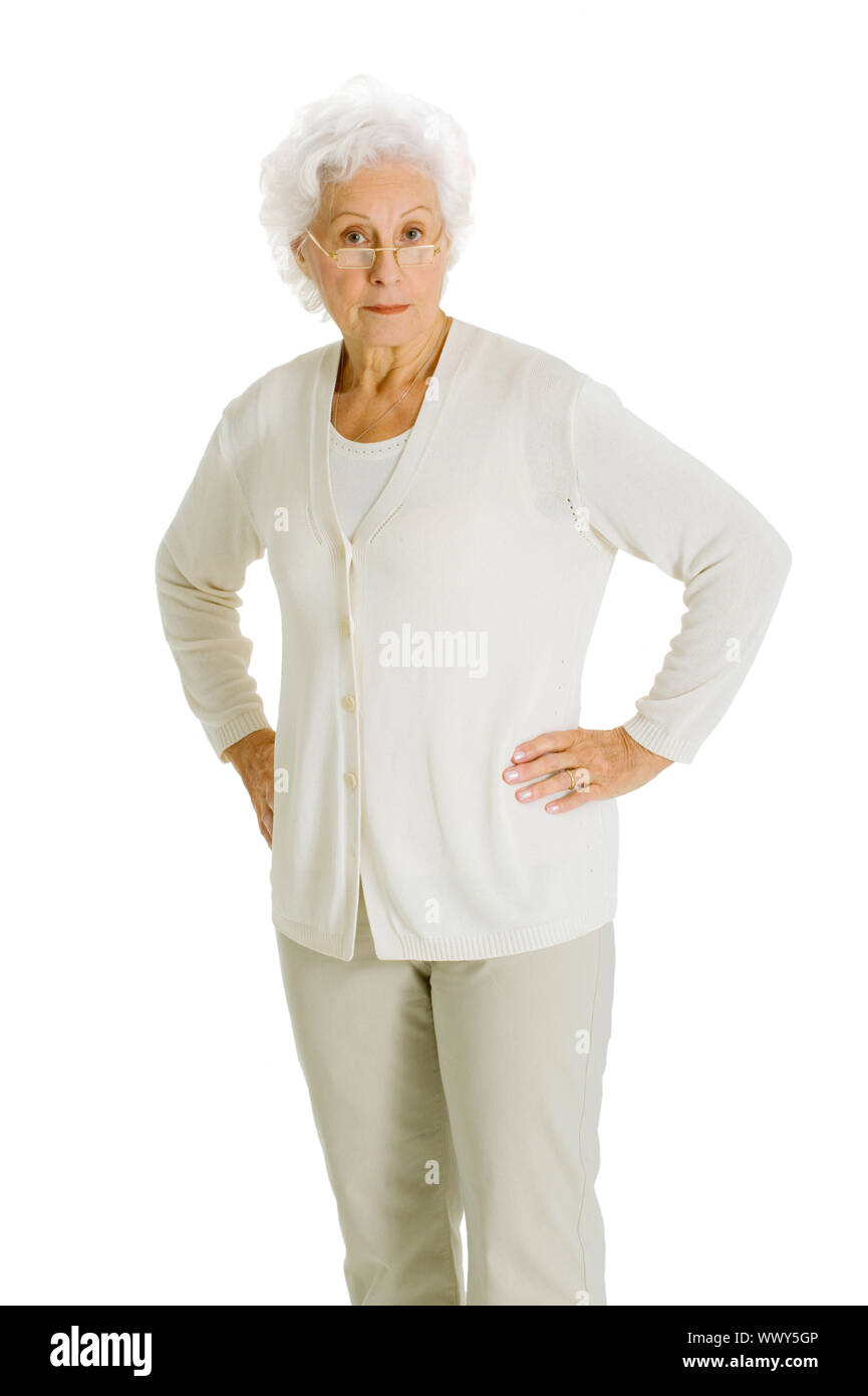 elderly woman with hands on hips Stock Photo Alamy