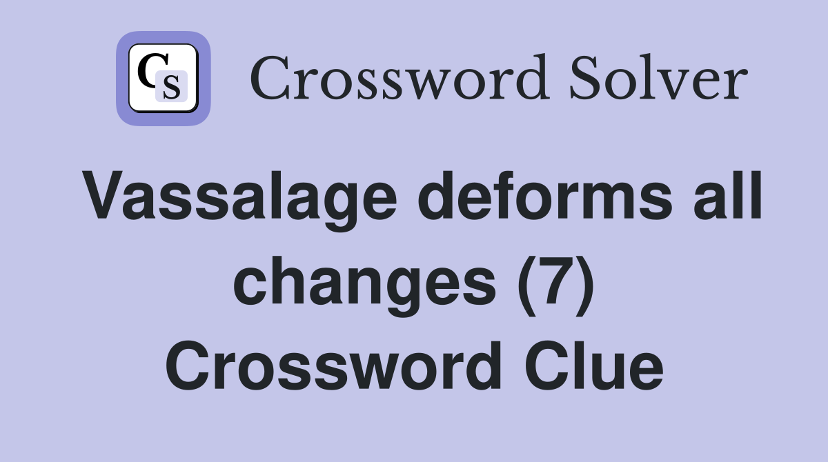 Vassalage deforms all changes (7) Crossword Clue Answers Crossword