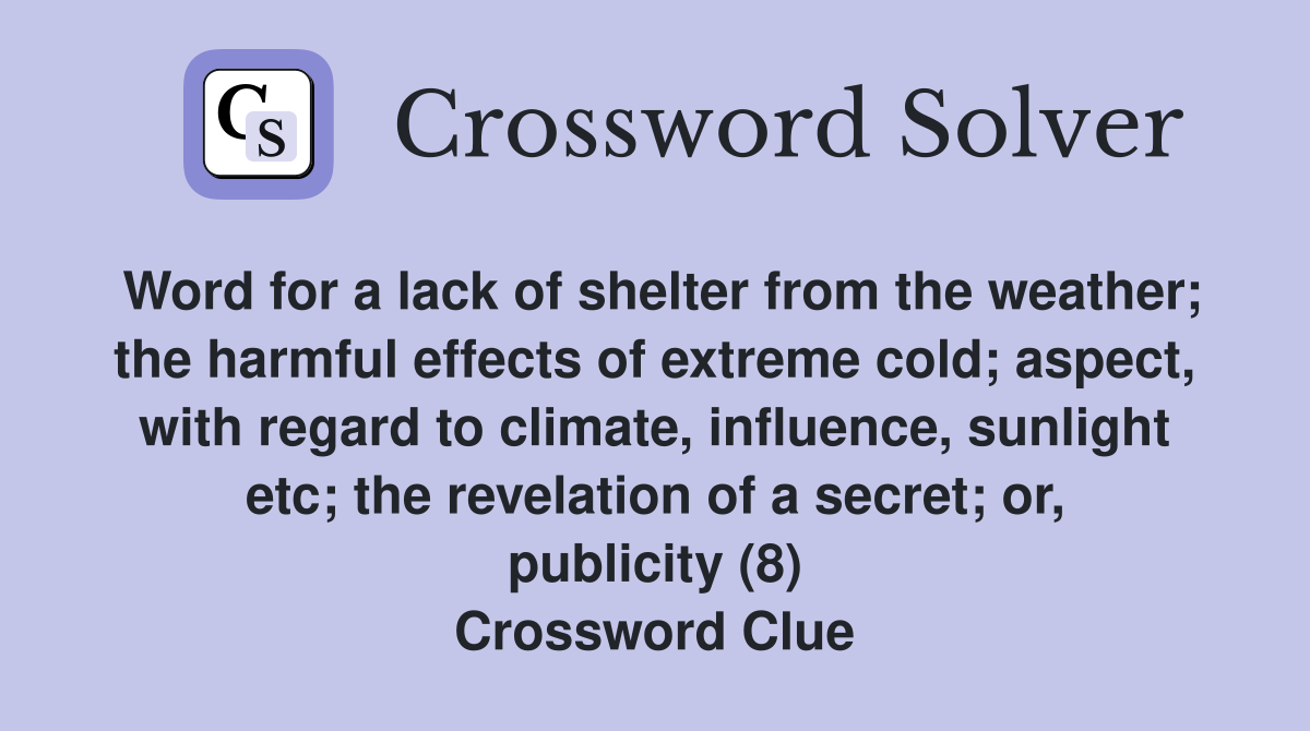Word for a lack of shelter from the weather the harmful effects of