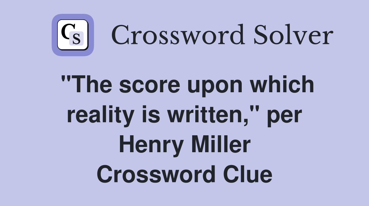 quot The score upon which reality is written quot per Henry Miller Crossword