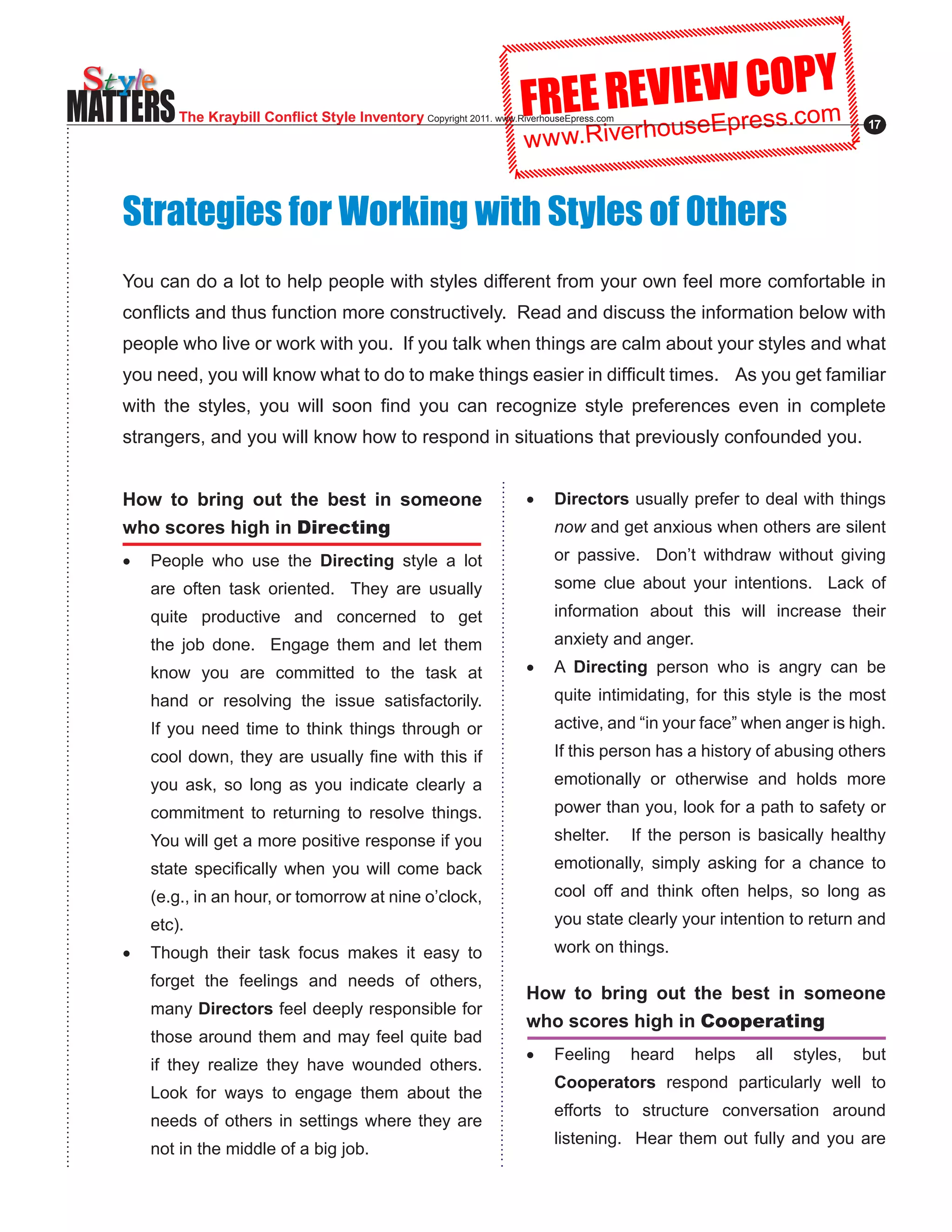 Style Matters Conflict Style Inventory PDF
