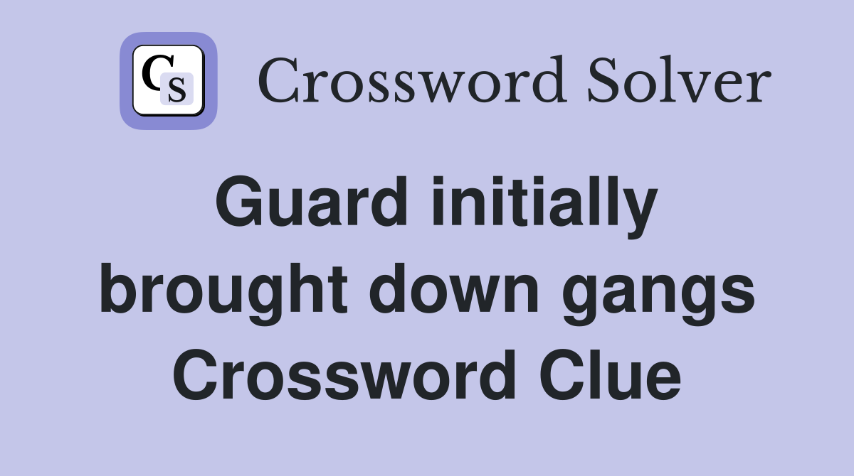 Guard initially brought down gangs Crossword Clue Answers Crossword