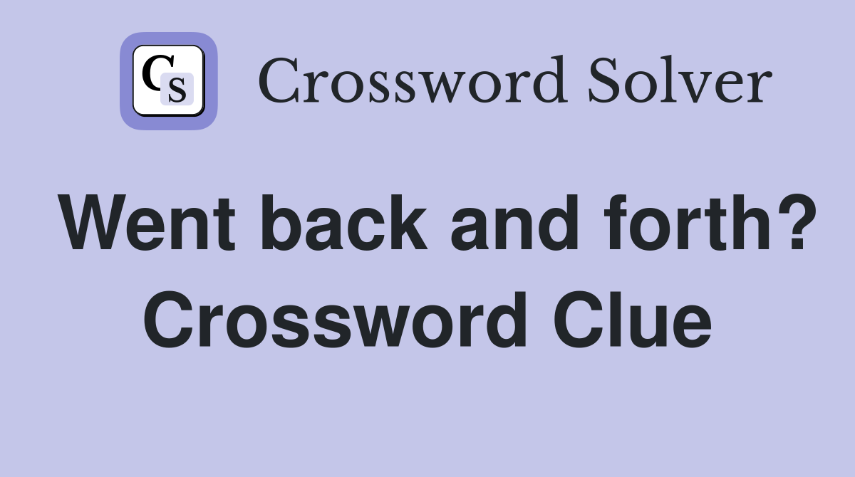 Went back and forth? Crossword Clue Answers Crossword Solver