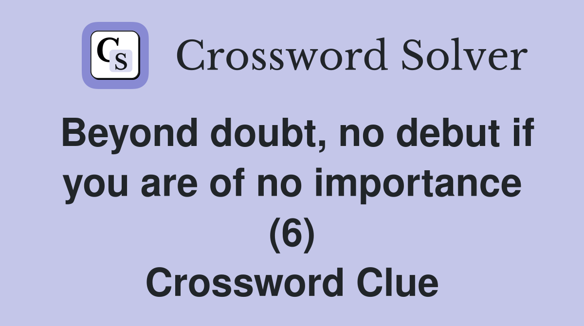 Beyond doubt no debut if you are of no importance (6) Crossword Clue