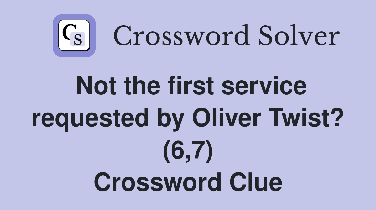 Not the first service requested by Oliver Twist? (6 7) Crossword Clue
