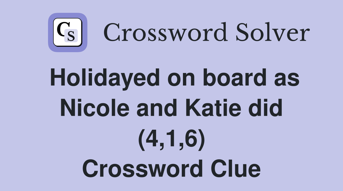 Holidayed on board as Nicole and Katie did (4 1 6) Crossword Clue
