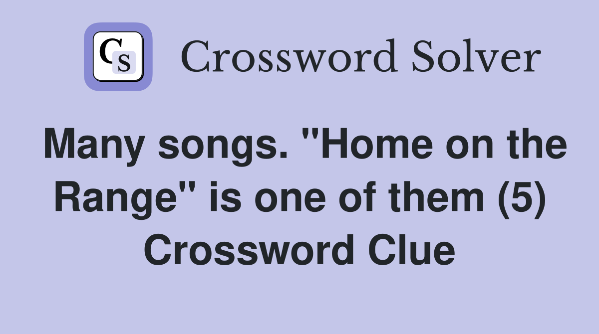 Many songs quot Home on the Range quot is one of them (5) Crossword Clue