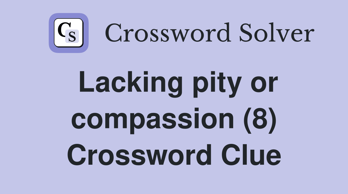 Lacking pity or compassion (8) Crossword Clue Answers Crossword Solver