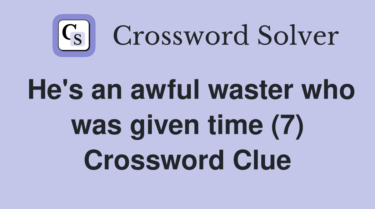 He #39 s an awful waster who was given time (7) Crossword Clue Answers