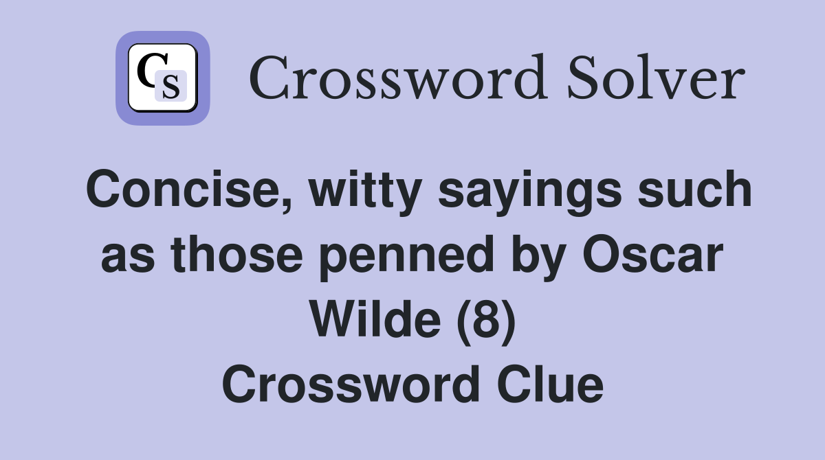 Concise witty sayings such as those penned by Oscar Wilde (8