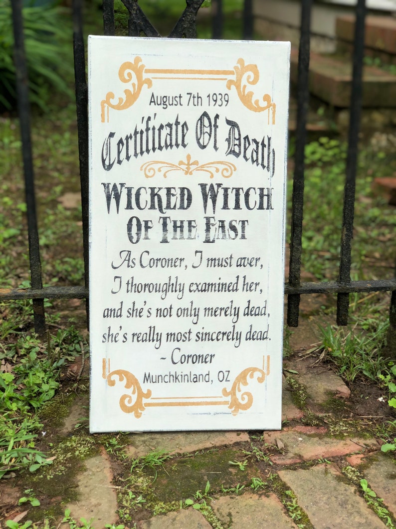 Wizard of Oz Wicked Witch Death Certificate / Handpainted Sign Etsy