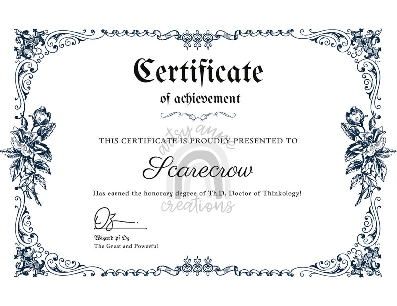 Printable Wizard of Oz Scarecrow Diploma Etsy