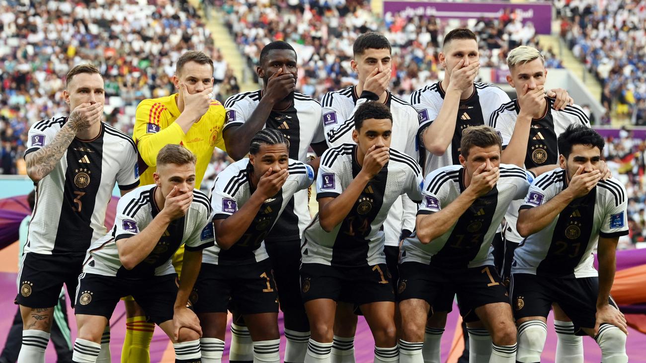 WM in Katar: DFB Spieler halten sich beim Gruppenfoto den Mund zu DIE