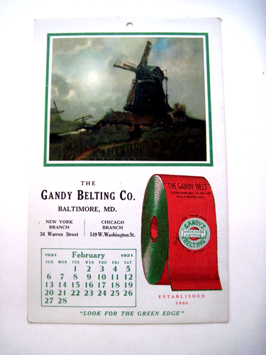 February 1921 Ad Calendar quot The Gandy Belting Co quot w/ Print by quot Wm