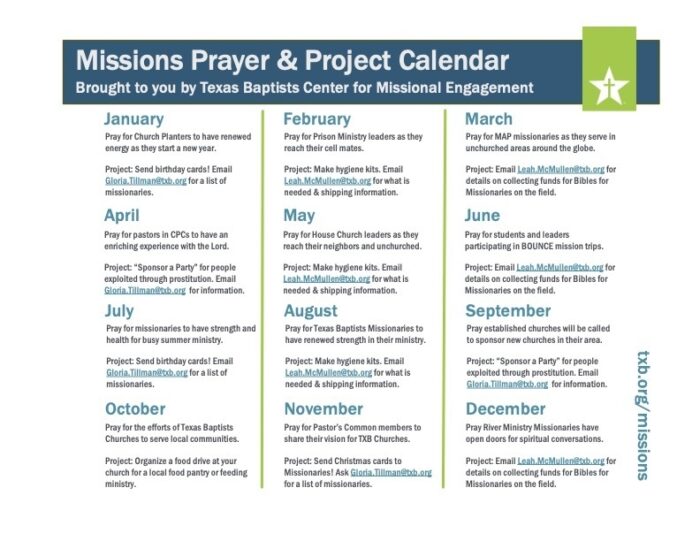 Missionary Prayer Calendar WMU Prayers Missionary Calendar