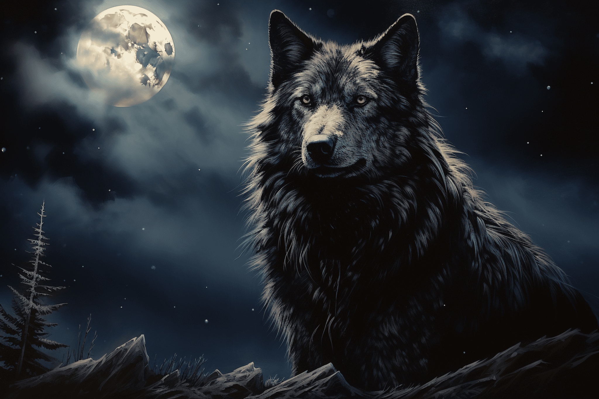 Un lobo negro muy dominante a la luz de la luna ia generativa Foto