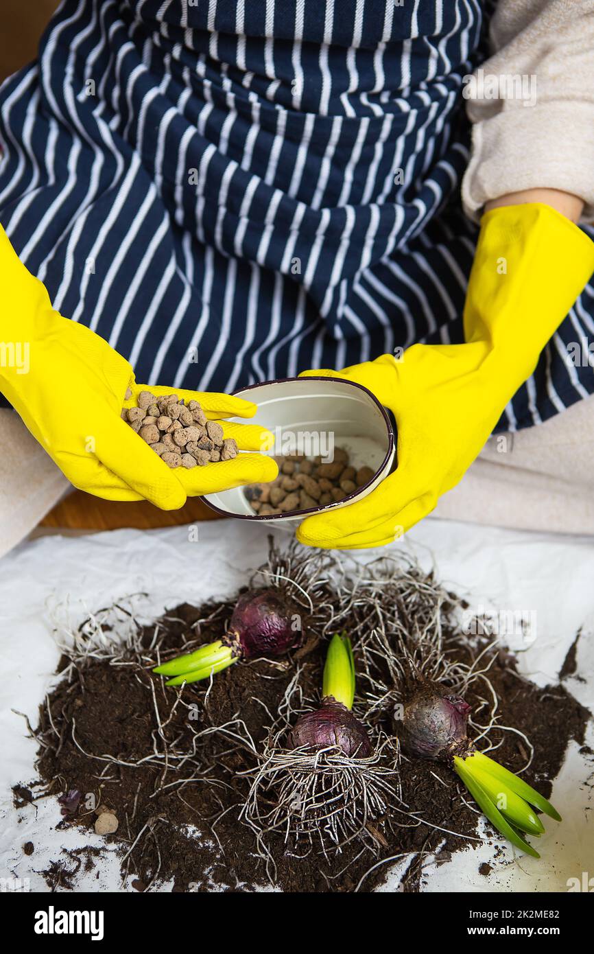 Woman in gloves transplanting hi res stock photography and images Alamy