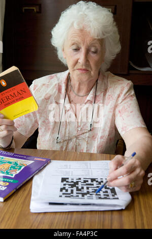 Woman using a German dictionary and doing a crossword Stock Photo Alamy