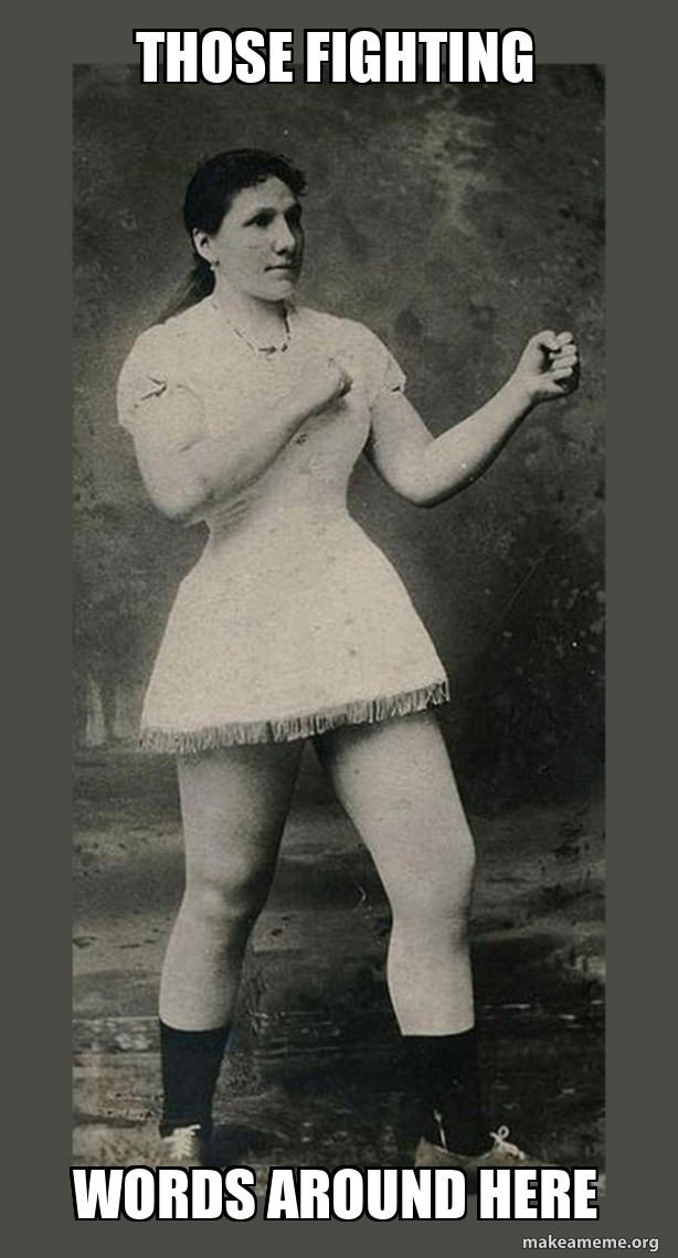 those fighting words around here Overly Manly Woman Meme Generator