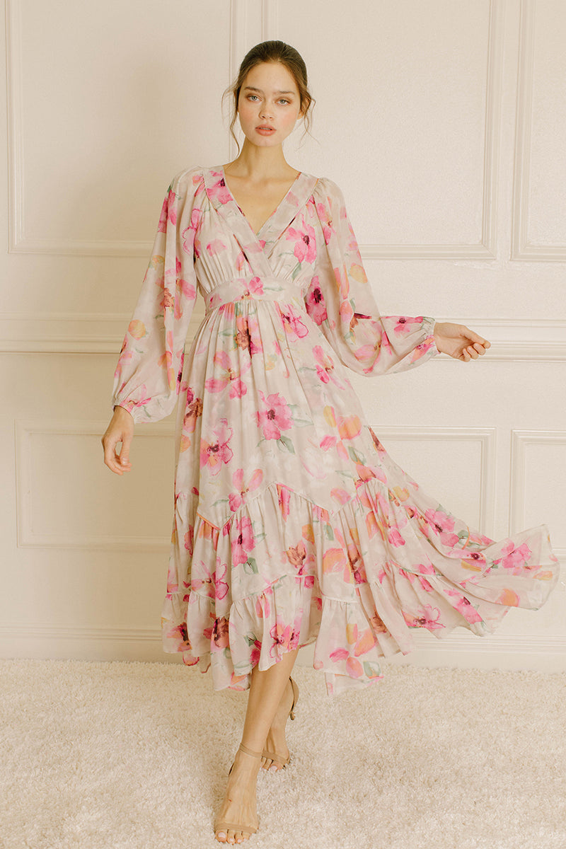 Vera Vibrant Floral Midi Dress Long sleeve floral dress Dress