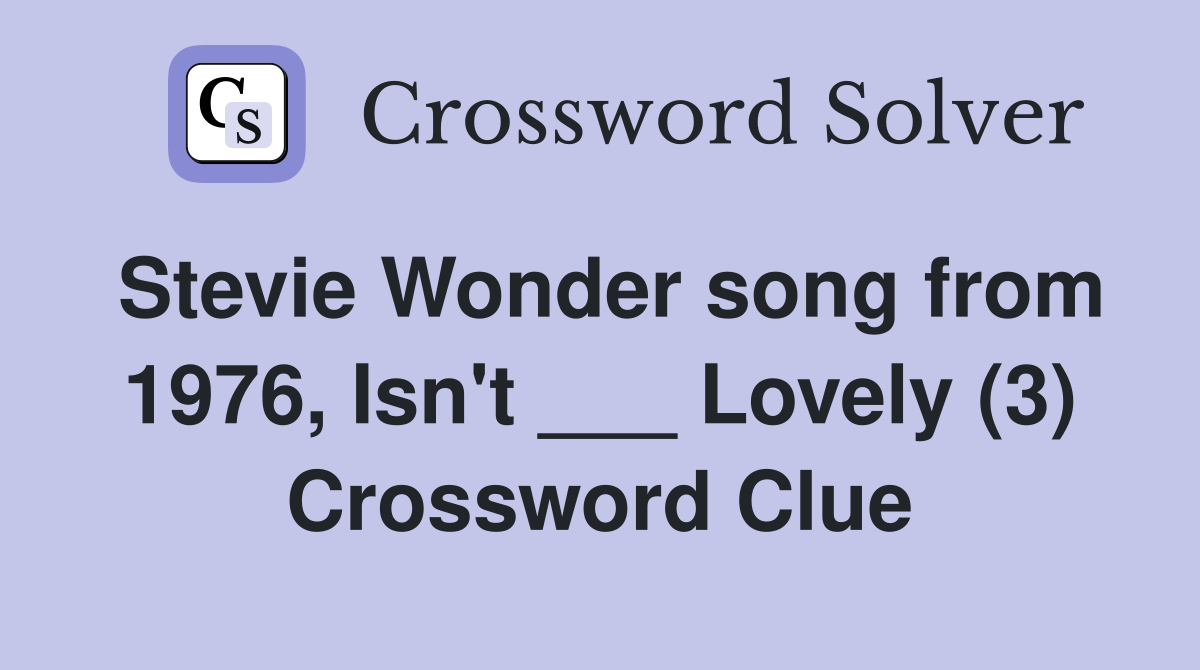 Stevie Wonder song from 1976 Isn #39 t Lovely (3) Crossword Clue