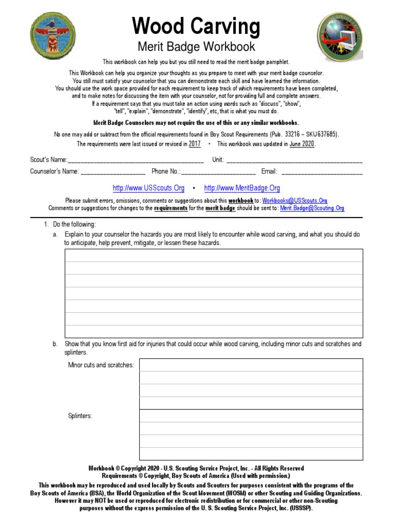 📛 Wood Carving Merit Badge (WORKSHEET REQUIREMENTS)