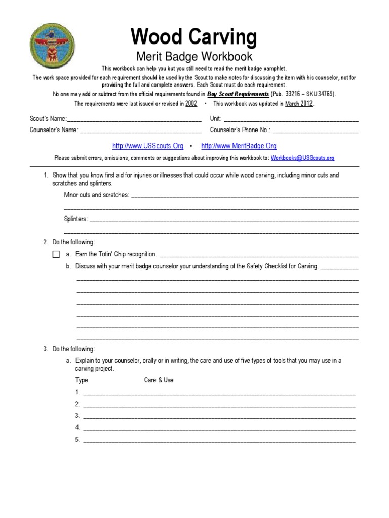 Wood Carving Merit Badge Worksheet Printable And Enjoyable Learning