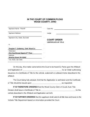Fillable Online clerkofcourt co wood oh Application Form for Order of
