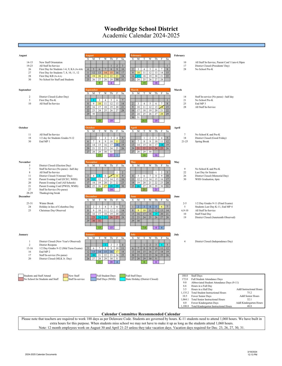 Woodbridge Schools District Calendar 24 25 PDF EduCounty
