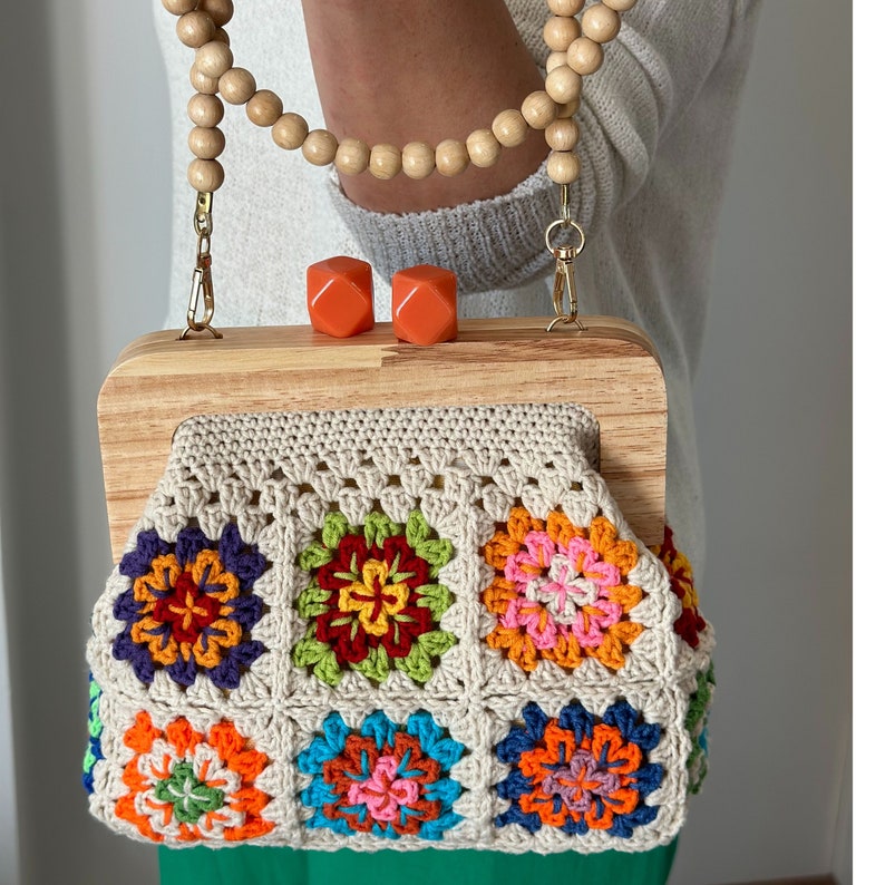 Stylish Crochet Bag With Wood Button and Multicolored Yarn Design