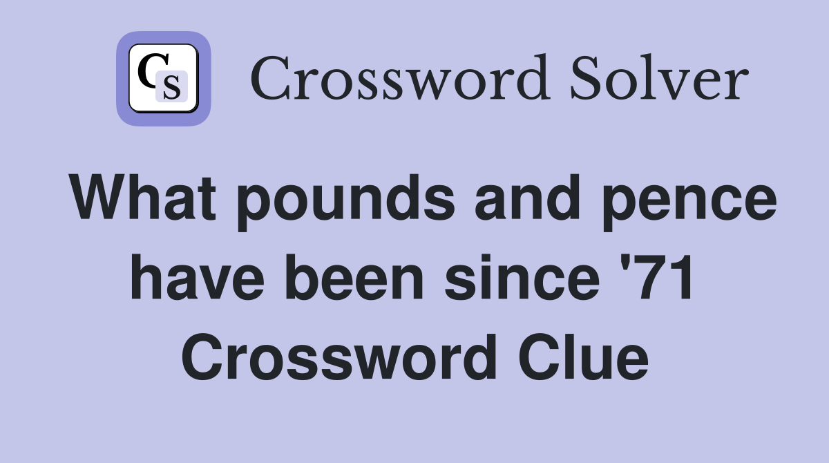 What pounds and pence have been since #39 71 Crossword Clue Answers