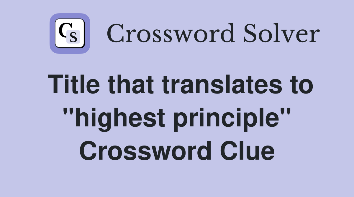 Title that translates to quot highest principle quot Crossword Clue Answers